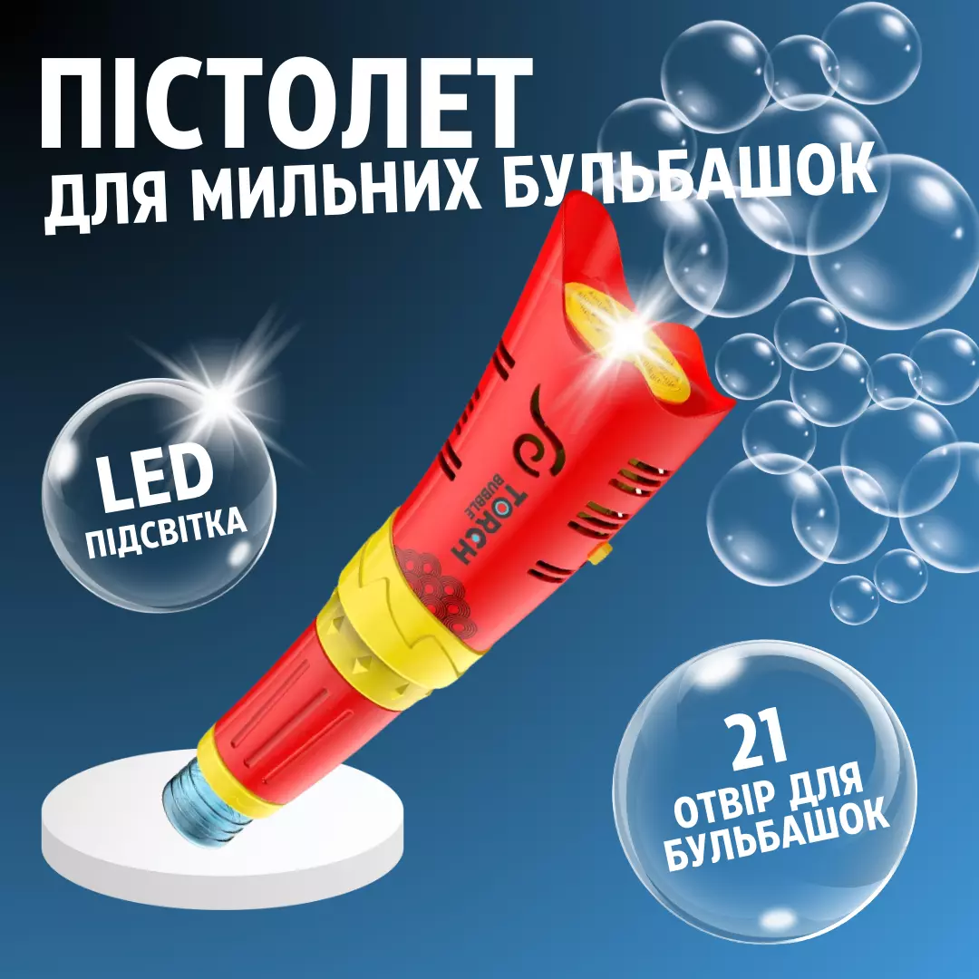бульбашок! Іграшка оснащена 21 отвором, випускаючи сотні бульбашок
