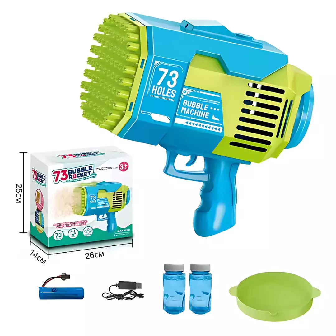 Іграшка працює від акумулятора, що робить її зручною та безпечною - жодних батарейок! Світлові ефекти додають видовищності, а ергономічний дизайн зручний навіть для маленьких ручок. Просто занурте ствол у спеціальну чашу з розчином, натисніть на кнопку та отримайте сотні яскравих бульбашок за секунди! Виготовлений із міцного ABS-пластику, стійкого до ударів і безпечного для дітей.