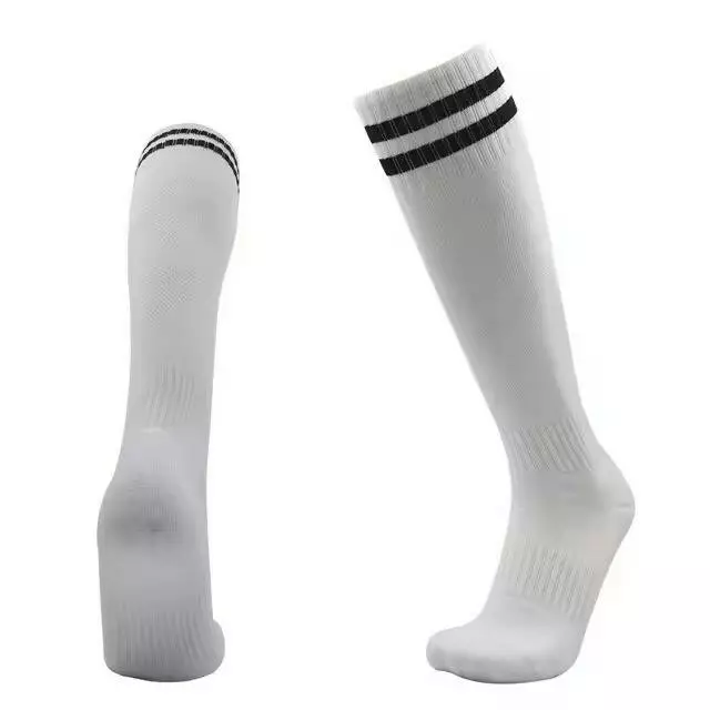 Гетри футбольні з рушниковою тканиною на підошві білі з чорними смужками CZST-314, розмір L