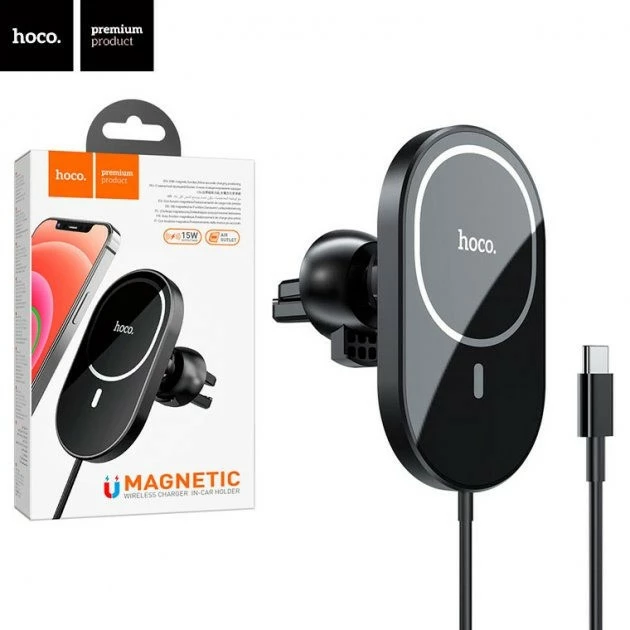 Холдер HOCO CA90 з підтримкою MagSafe 15W Автомобільний магнітний тримач для телефону із зарядкою Чорний