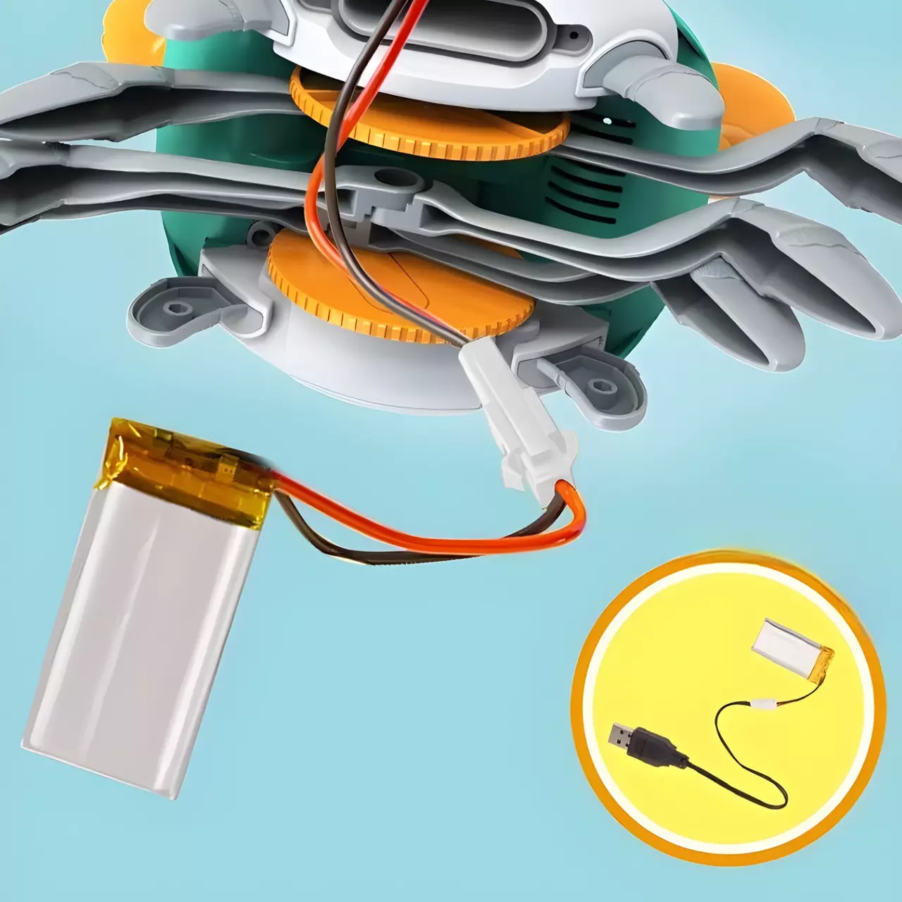 Краб оснащений зручним управлінням і двома режимами роботи. У комплекті передбачена пляшечка з рідиною для створення ефекту розпилення. Іграшка працює від вбудованого акумулятора Li-ion 3.7V, що робить її більш зручною та економічною у використанні. Виготовлена з міцного пластику з безпечними електронними компонентами, підходить для дітей від 3 років.