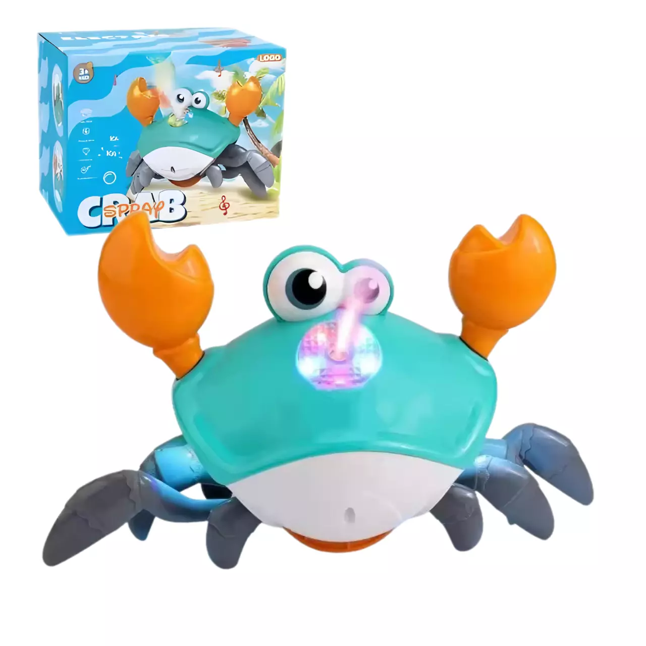 Інтерактивна іграшка «Бігаючий краб», що танцює з підсвічуванням, музикою та ефектом розпилення, на акумуляторі, бірюзовий