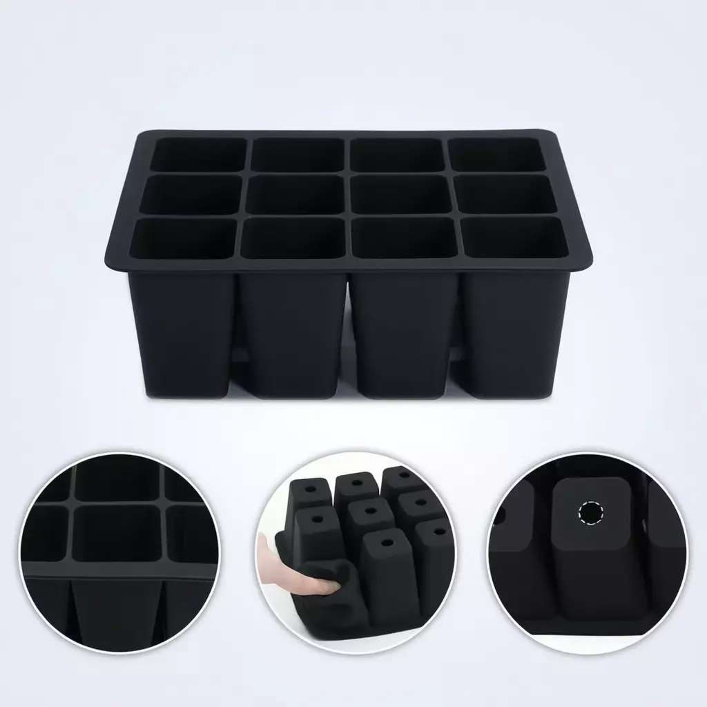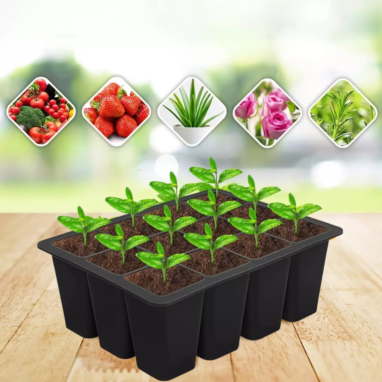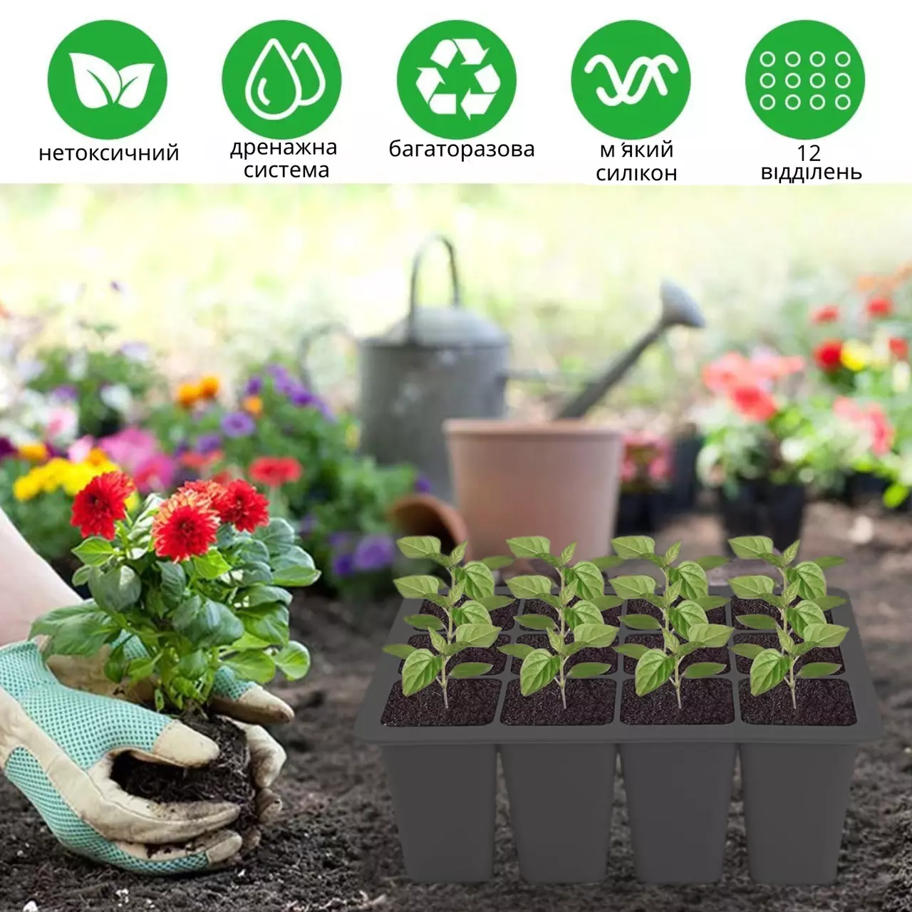Касета для розсади лоток садовий на 12 комірок, силіконовий, багаторазовий для вирощування насіння, рослин, квітів, чорний
