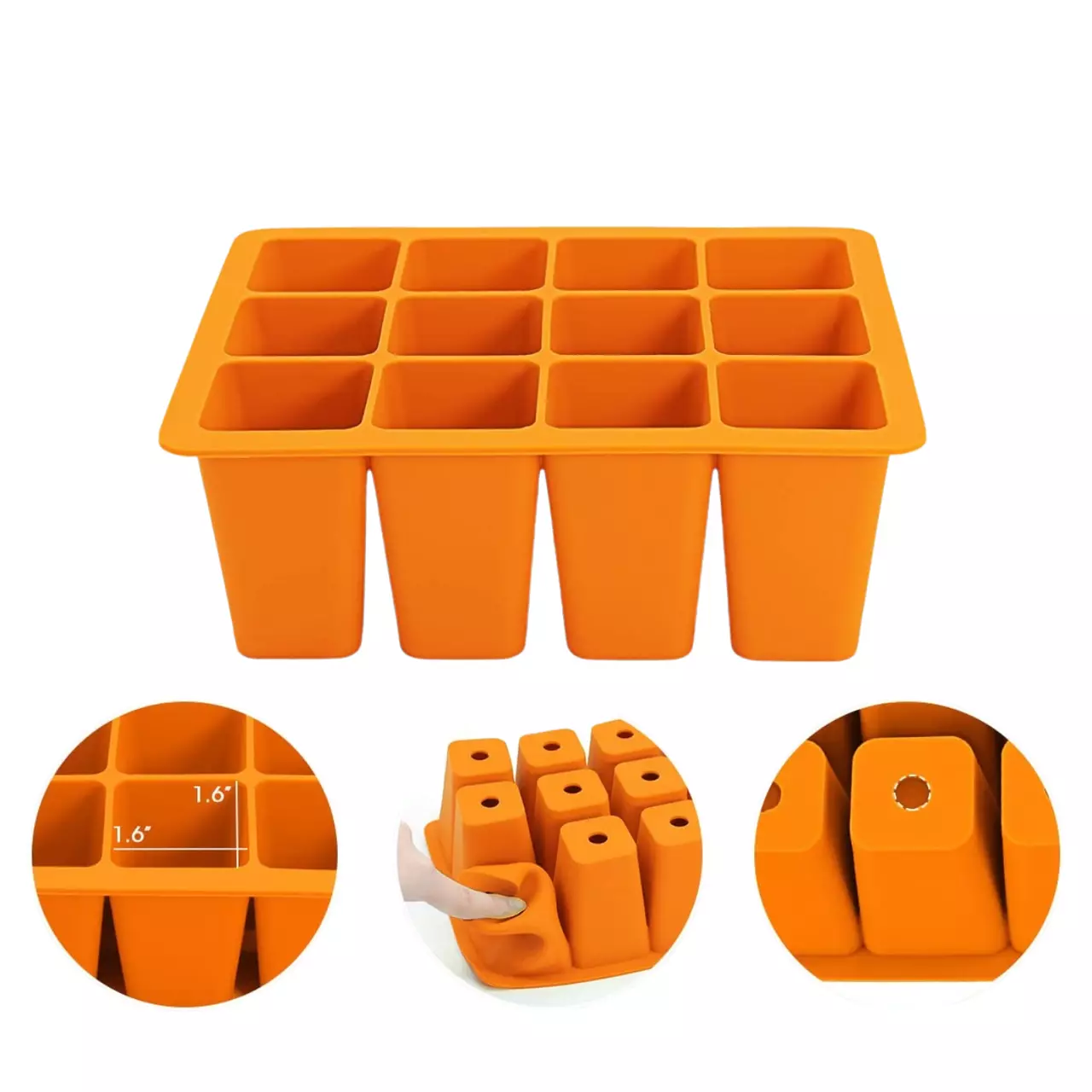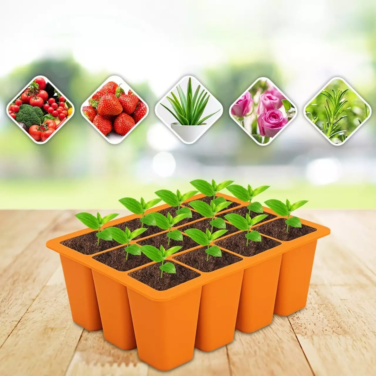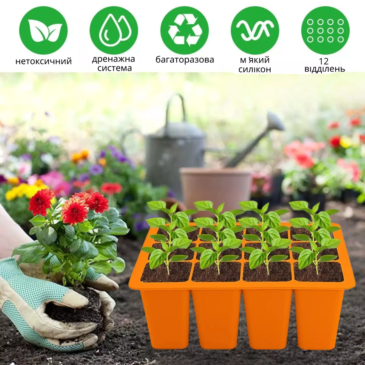 Касета для розсади лоток садовий на 12 комірок, силіконовий, багаторазовий для вирощування насіння, рослин, квітів, помаранчевий