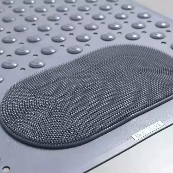 Килимок атиковзкий для ванної кімнати та душу, масажний для ніг силіконовий з присосками, сірий 50х80 см