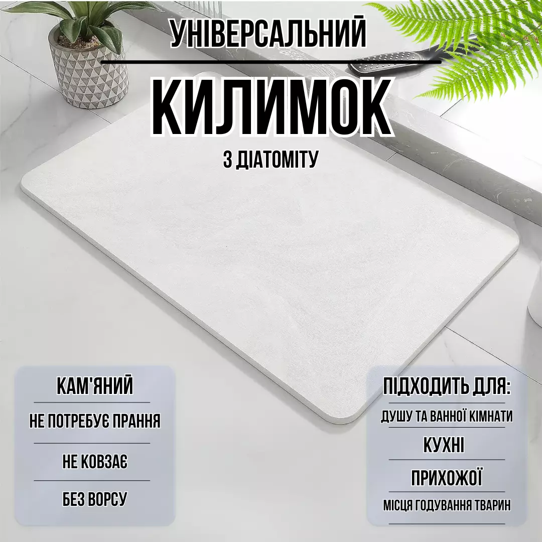 Килимок діатомітомітовий для душу та ванної кімнати, кухні, передпокою кам'яний 60х39 см колір білий