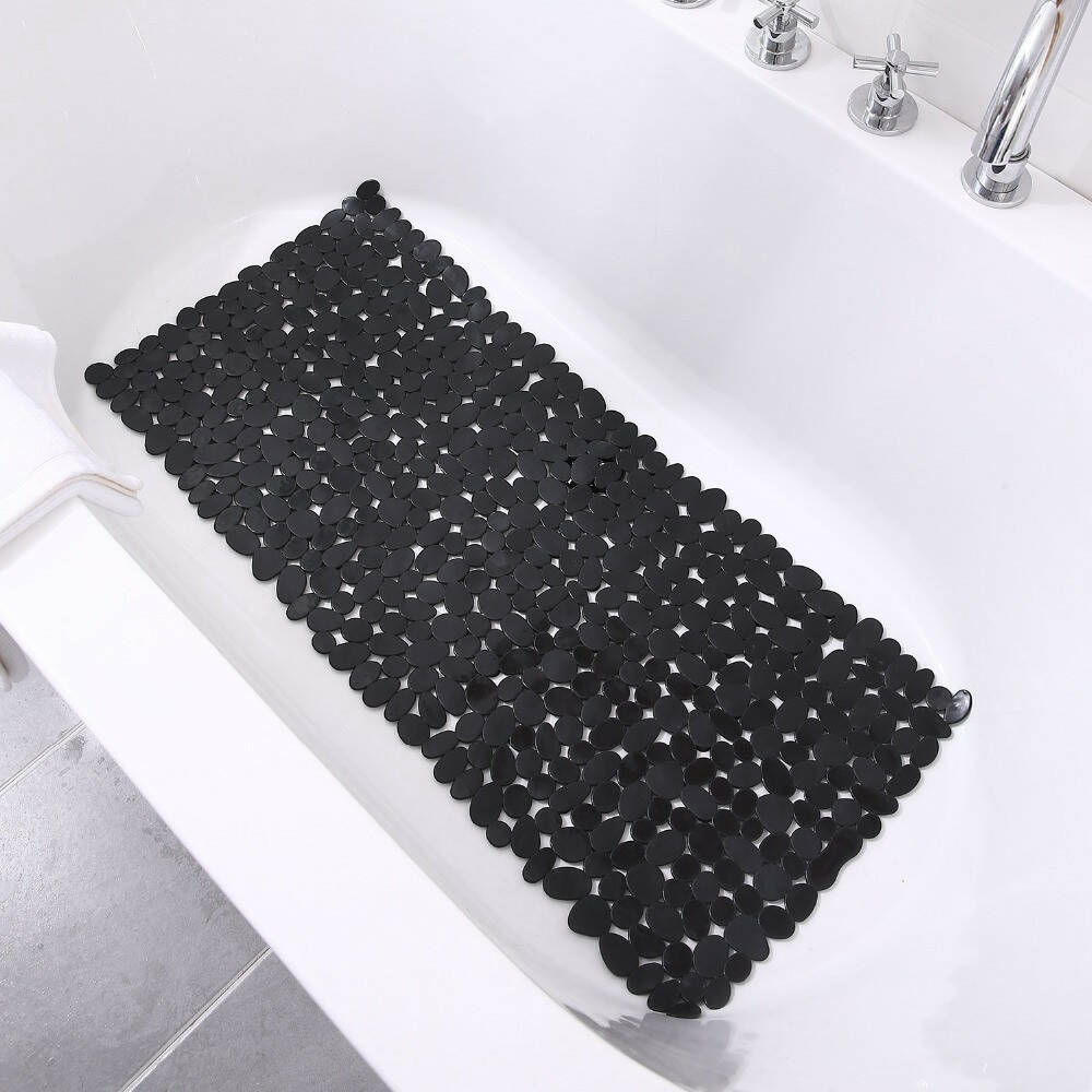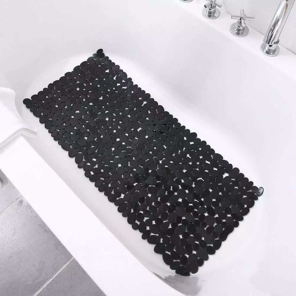 Килимок для душу і ванної кімнати силіконовий, антиковзаючий у ванну прямокутний 40х88 см, чорний