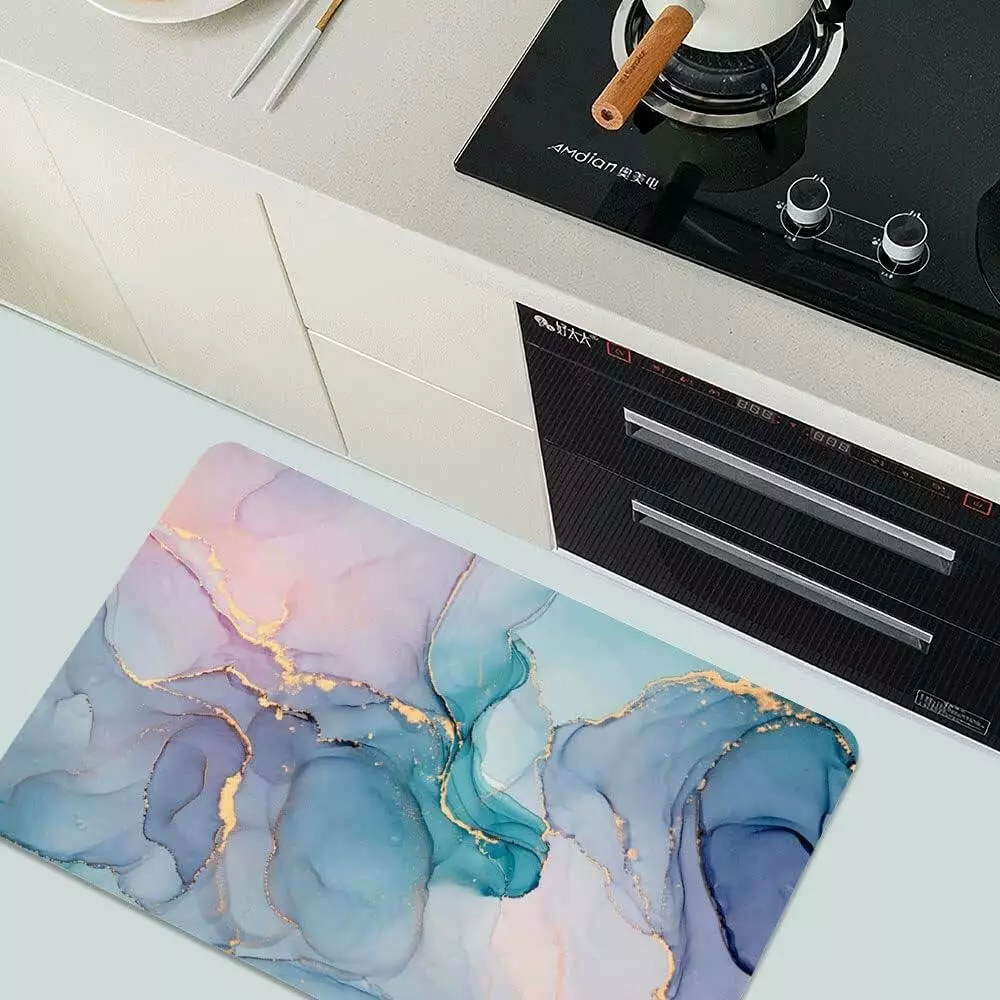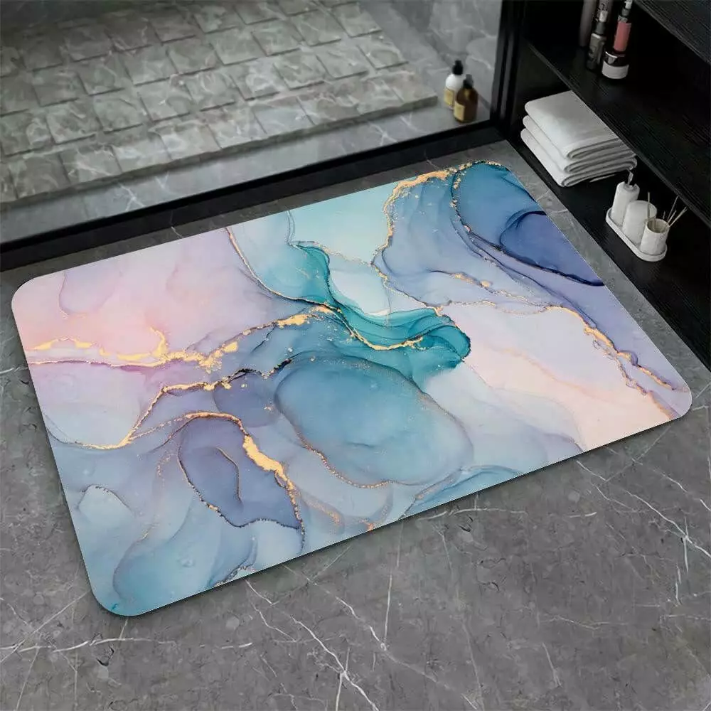 Нижня частина килимка виконана з протиковзкої каучукової основи, яка надійно фіксує килимок на підлозі навіть на вологій поверхні. Верхній шар виготовлений з поліестеру з якісним принтом, стійким до зношування. Килимок легко очищується — достатньо витрусити пил і волосся або промити водою. Завдяки універсальному дизайну він підходить не лише для ванної кімнати, а й для кухні, передпокою, пральні або зони для домашніх тварин.