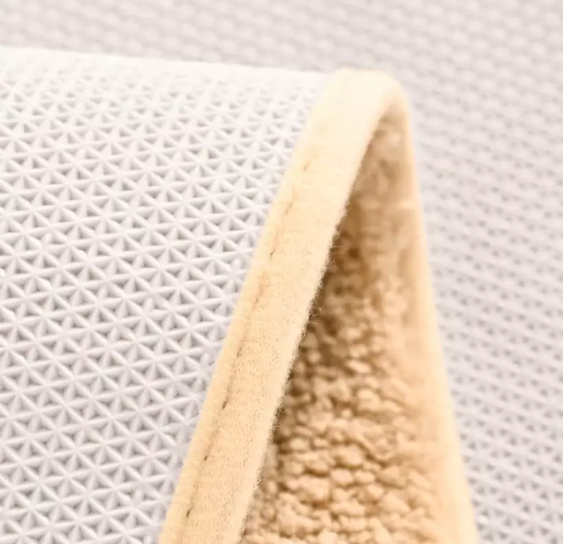 Зручний овальний килимок чудово підійде для вашої ванної кімнати. Виготовлений із м’якої мікрофібри щільністю 1600 GSM і має пухнастий ворс завтовшки 20 мм. Стриманий дизайн — візерунок зі смужок по краях килимка. Латексна основа TPR запобігає ковзанню на мокрій підлозі. Добре вбирає вологу, швидко сохне, легко переться.