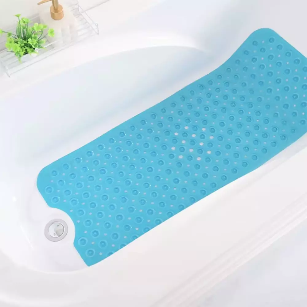 Килимок для ванної кімнати та душу атиковзкий, для тіла масажний силіконовий з присосками, синій, 40х100 см