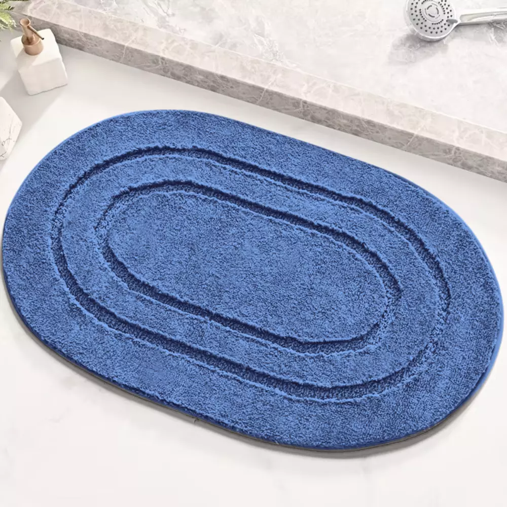 Килимок для ванної кімнати та душу килимок для ніг у душову, мікрофібра, атиковзкий овальний 50х80 см, синій