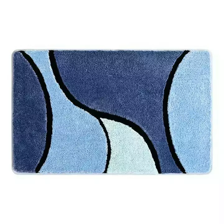 Килимок для ванної та душу килимок для ніг у ванну кімнату, мікрофібра, атиковзкий 50х80 см, синій з візерунком