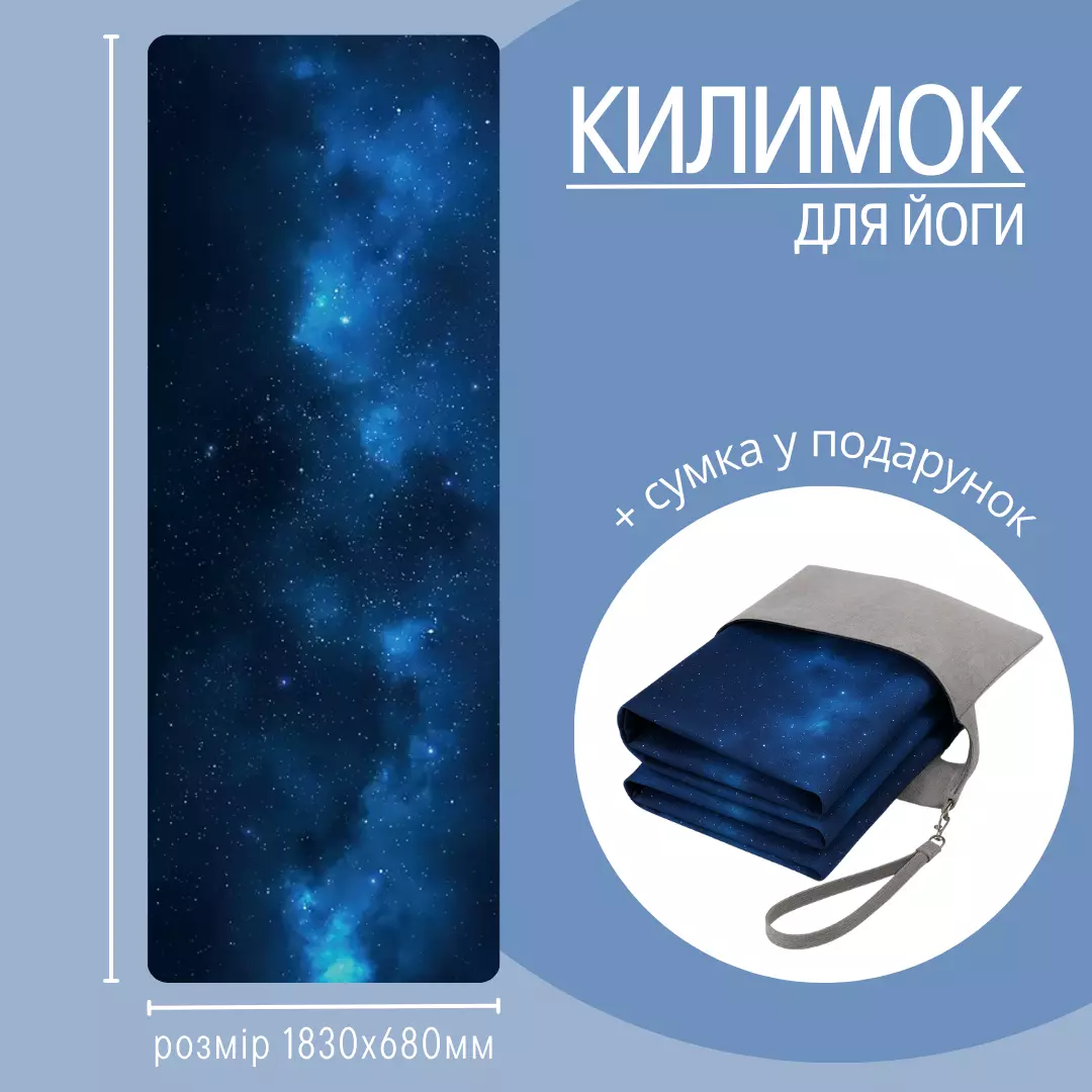 Килимок для йоги та фітнесу, м'який складний килимок з каучуку та замші, 1830×680 мм, принт небо