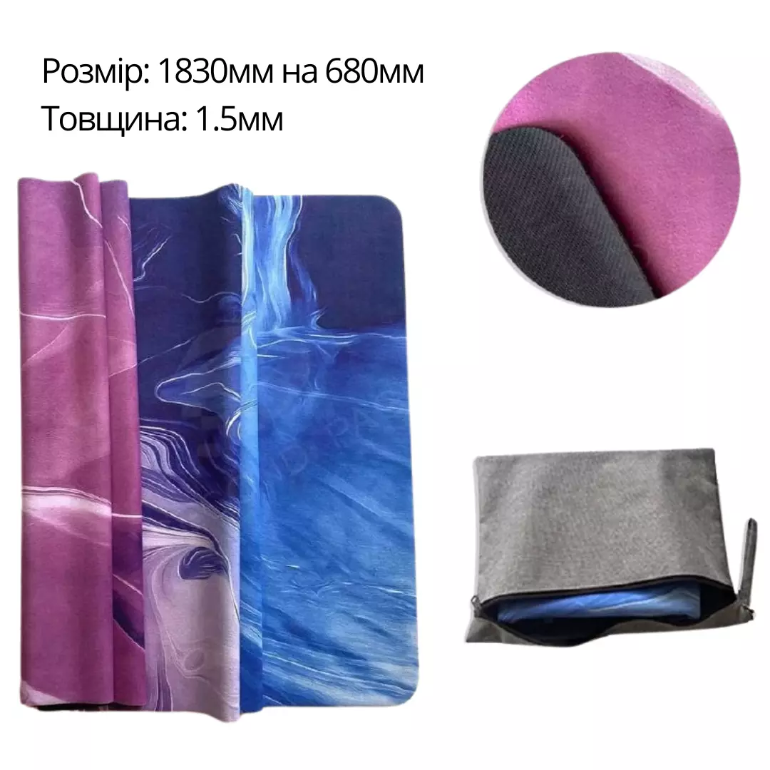 Килимок для йоги та фітнесу, м'який складний килимок з каучуку та замші, 1830×680 мм, принт вода
