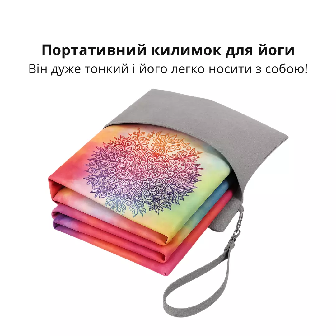 Килимок для йоги та фітнесу, м'який складний килимок з каучуку та замші, 1830×680 мм, принт яскраві кольори