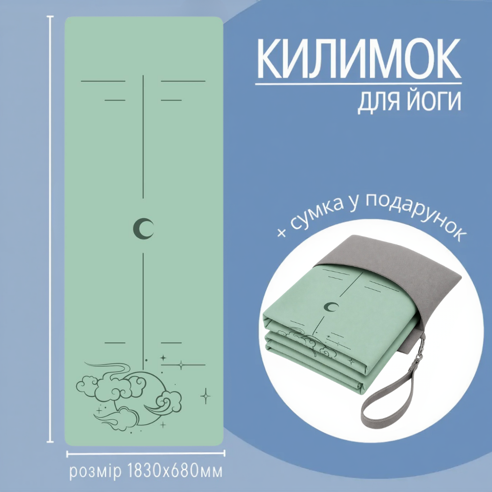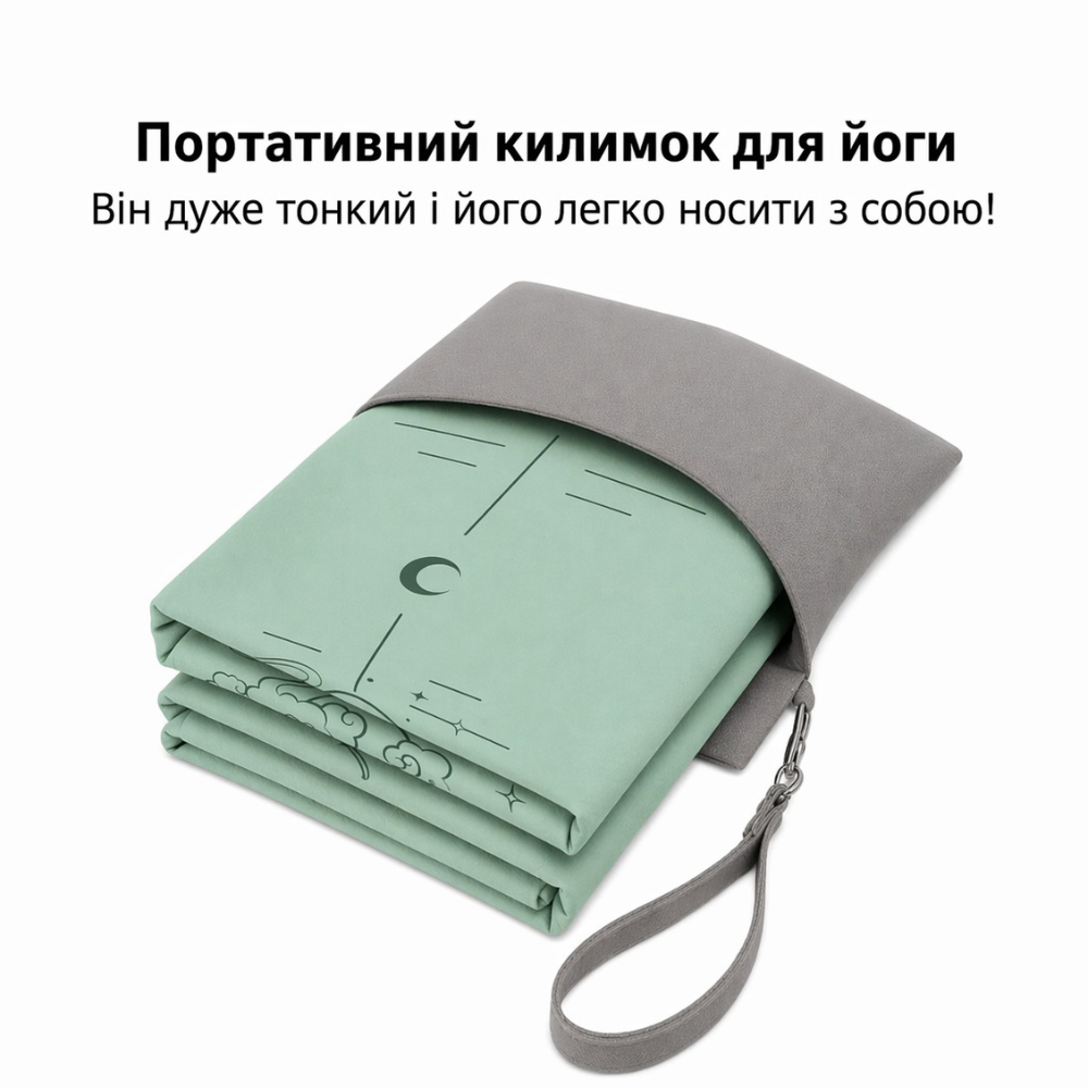 Килимок для йоги та фітнесу, складаний м'який килимок з каучуку та замші, спортивний каремат із сумкою для перенесення, м'ятний