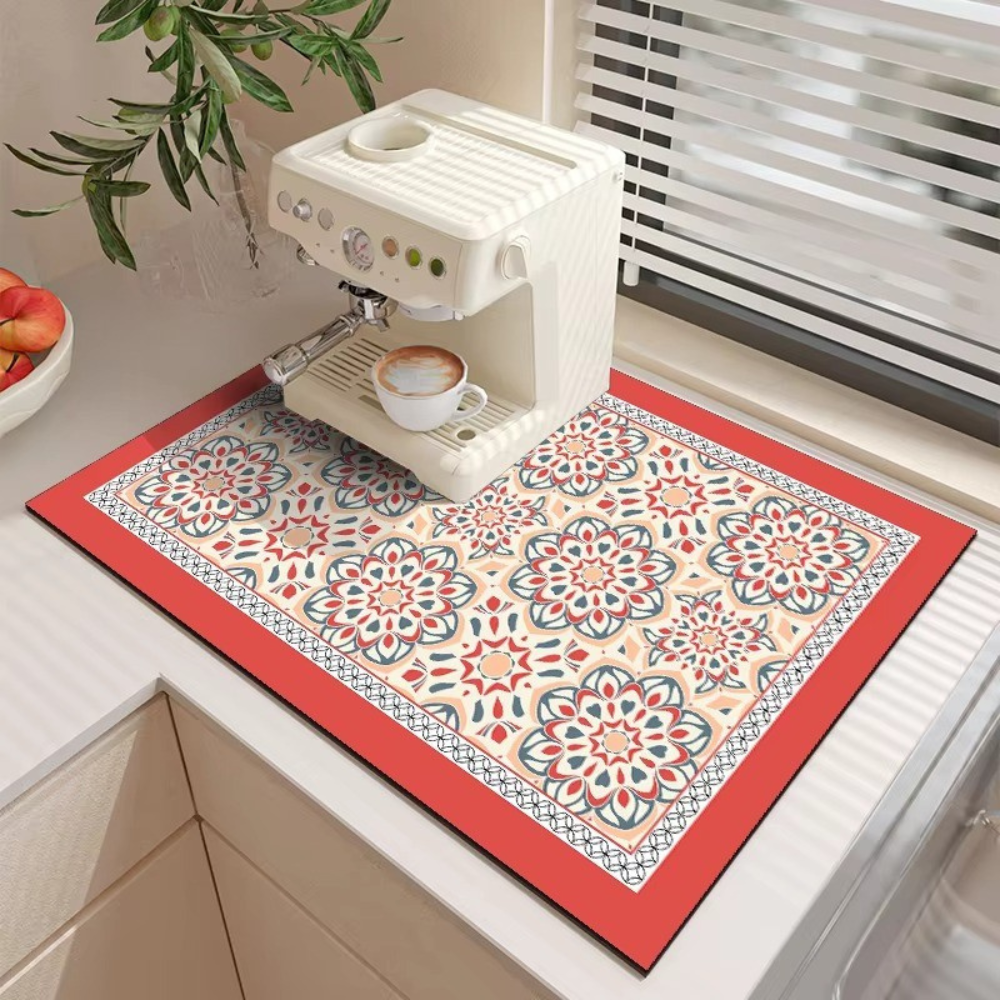 Килимок кухонний на стільницю для кавомашини і побутових приладів, гумовий, вологопоглинаючий, бежево-кораловий