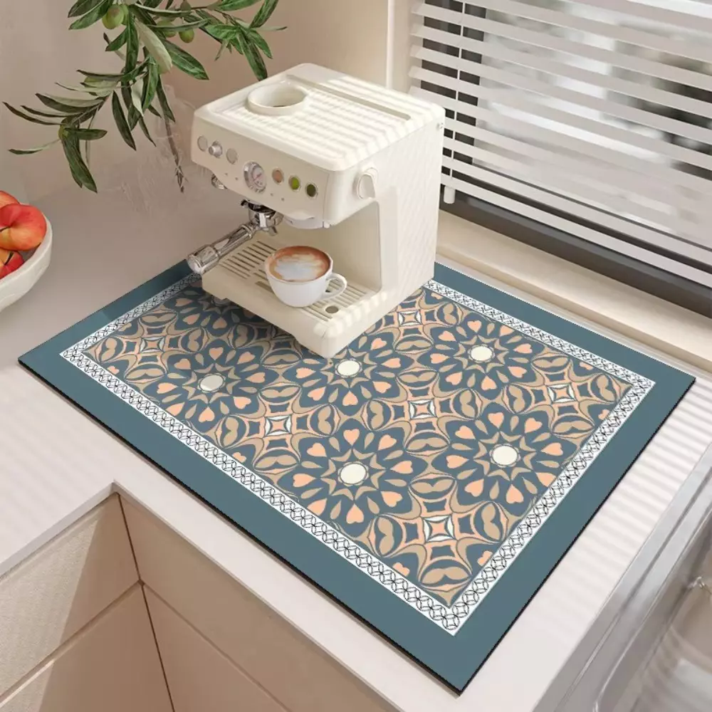 Килимок кухонний на стільницю для кавомашини і побутових приладів, гумовий, вологопоглинаючий, Блакитний