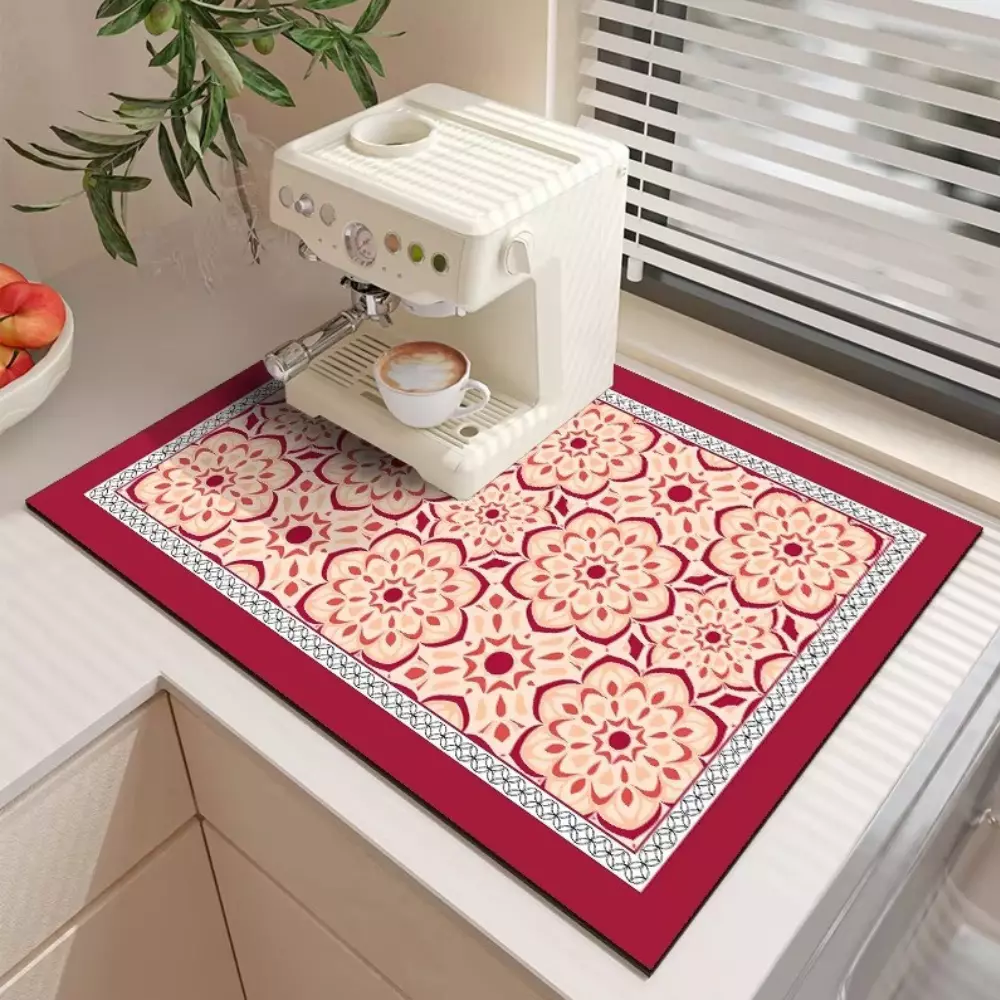 Килимок кухонний на стільницю для кавомашини і побутових приладів, гумовий, вологопоглинаючий, червоний з бежевим