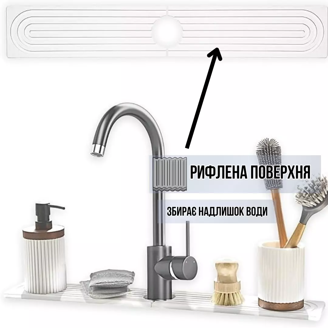 Килимок складається з двох частин і має розміри 60x10 см, ідеально підходить під будь-які змішувачі. Його рельєфна поверхня ефективно відводить надлишки води, запобігаючи скупченню крапель. Простий у догляді: досить протерти килимок вологою ганчіркою або сполоснути водою, щоб він знову став як новий.