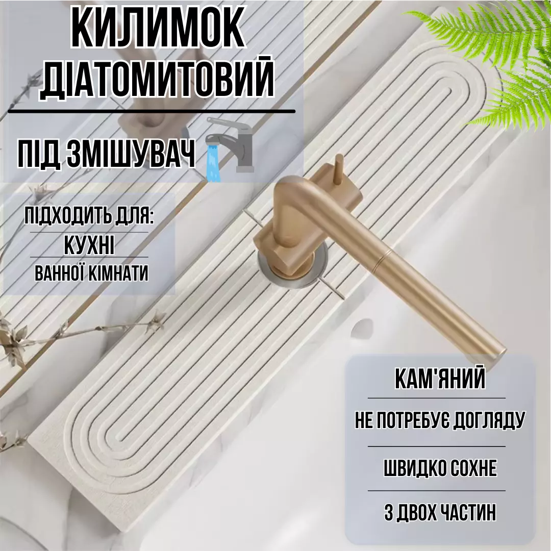 Килимок-накладка під змішувач на раковину в кухню або ванну кімнату, кам'яний діатомітовий білий