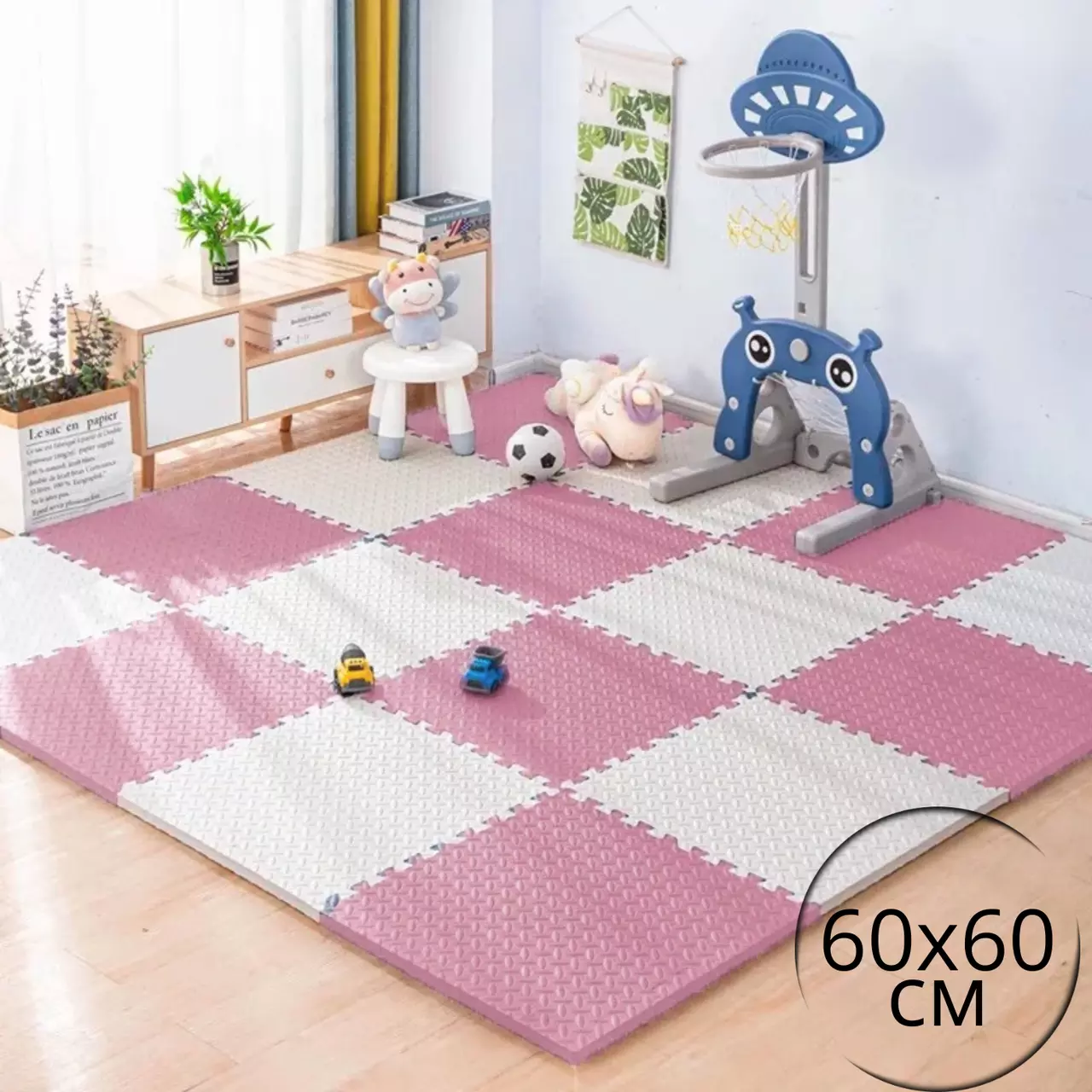 Килимок-пазл підлоговий, термокилимок, без покриття, Eva-піни, 30 пазлів 60*60 см, площа покриття 10,8 м², товщина 1 см, рожевий