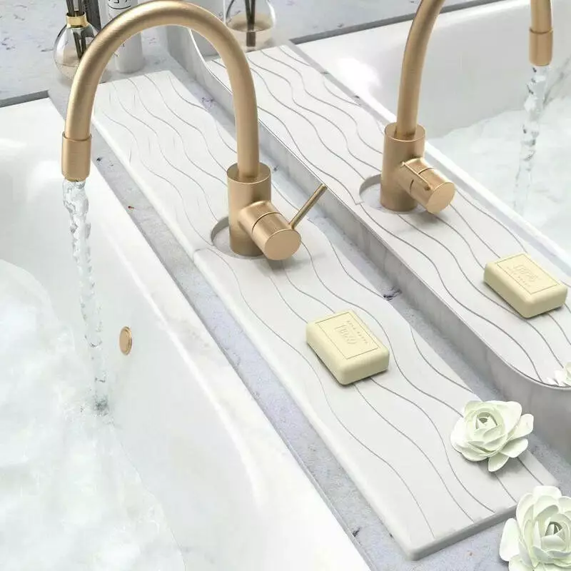 Килимок під змішувач, накладка в кухню або ванну кімнату на раковину, кам'яний з діатоміту, колір білий