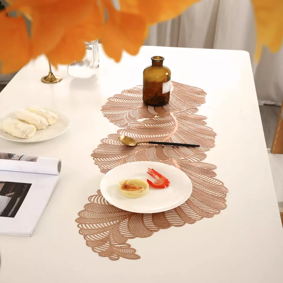 Виготовлений із міцного ПВХ, не вбирає запахи, не ковзає і не залишає слідів. Такий килимок захистить поверхню від гарячого. Можна використовувати під тарілки, чашки, каструлі, вази та прилади. Килимок для сервірування легко миється і може використовуватися багаторазово.