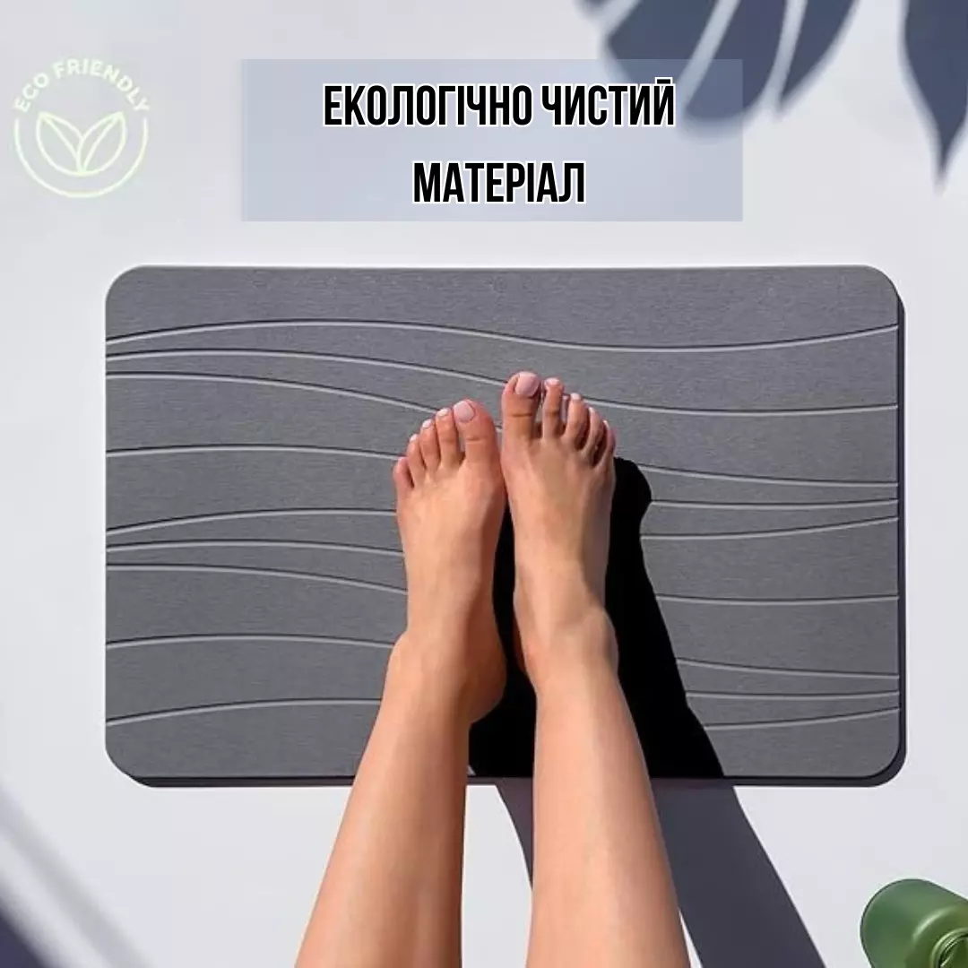 Килимок з діатоміту для душу і ванної кімнати, кухні, передпокою, кам'яний, універсальний сірий колір