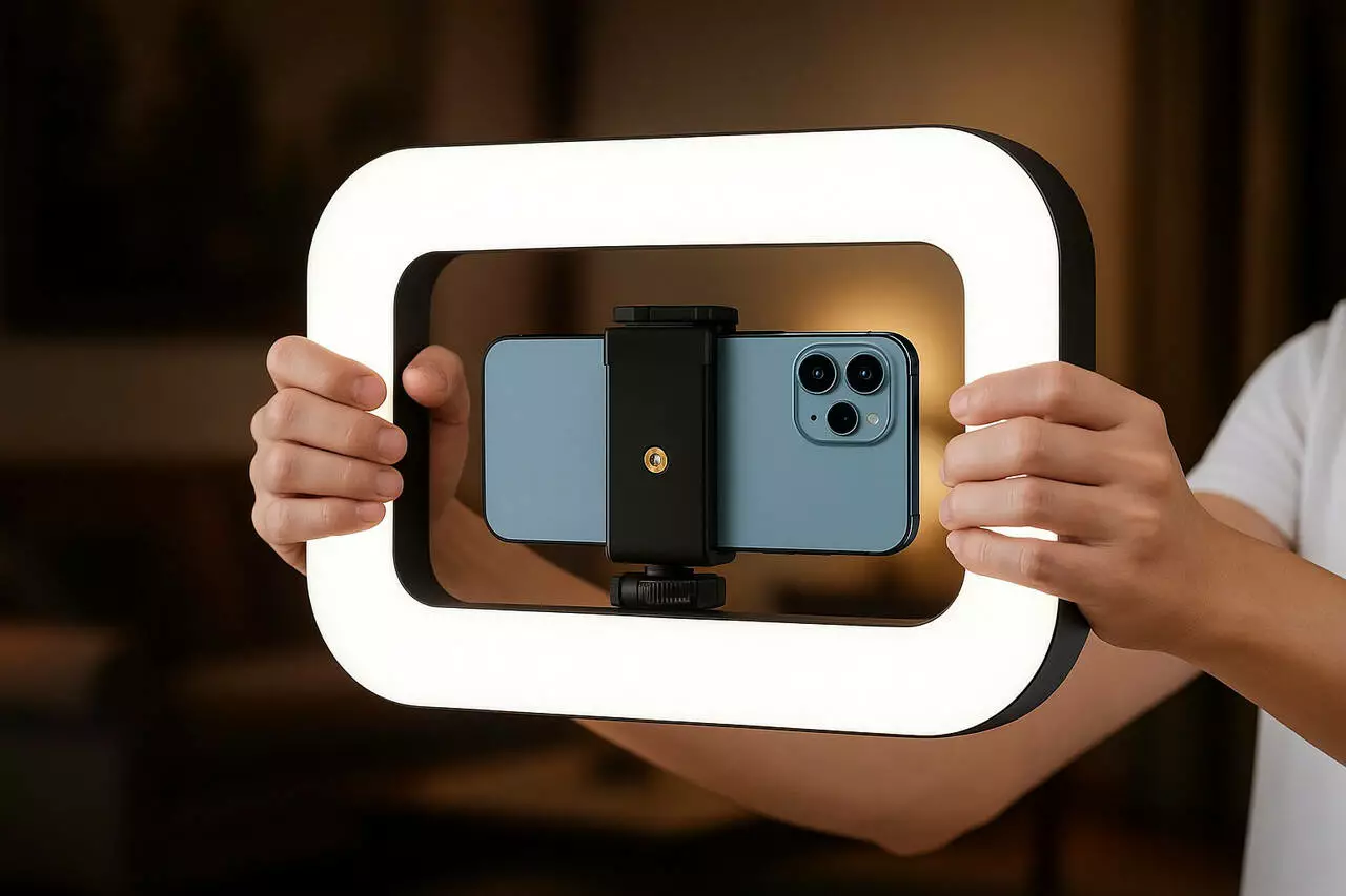 Кільцева лампа для смартфона і камери, Ріг тримач з LED підсвічуванням з акумулятором 8000mAh для відеозйомок