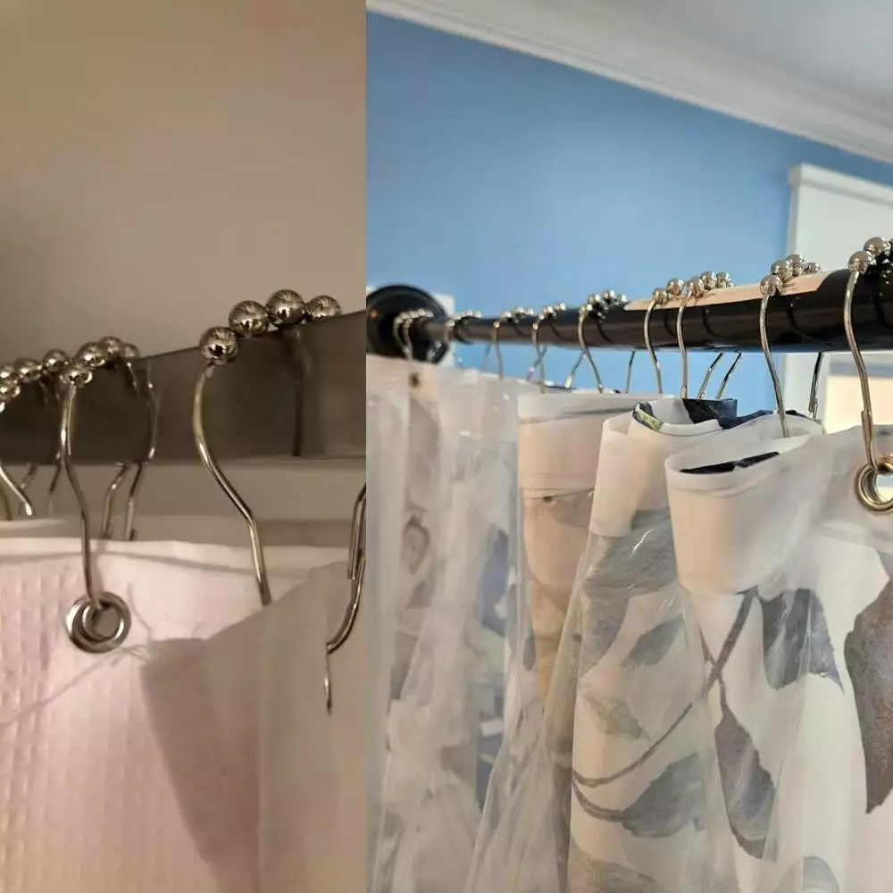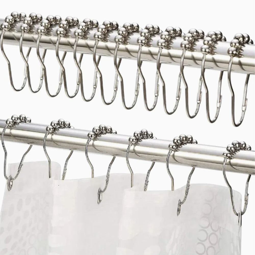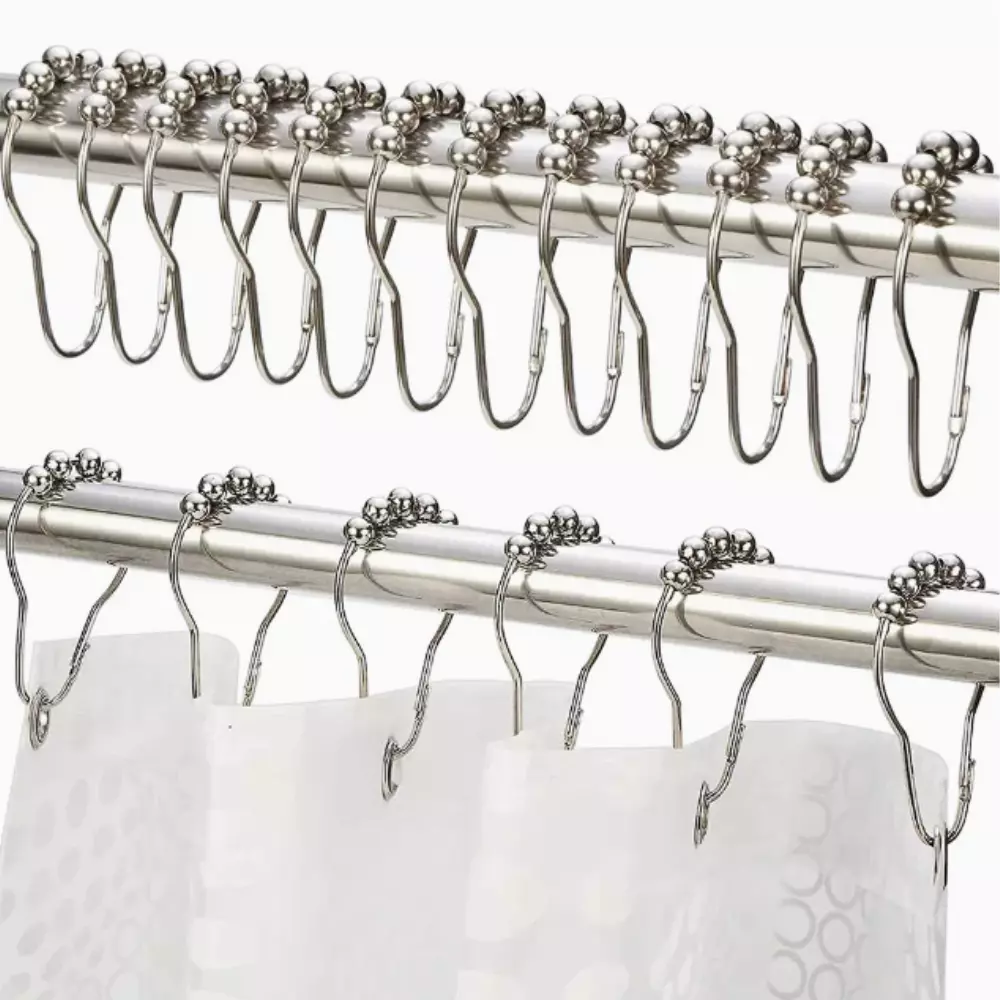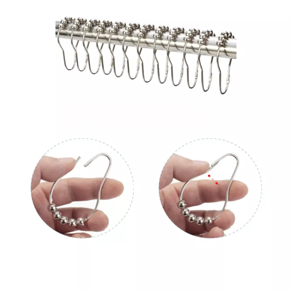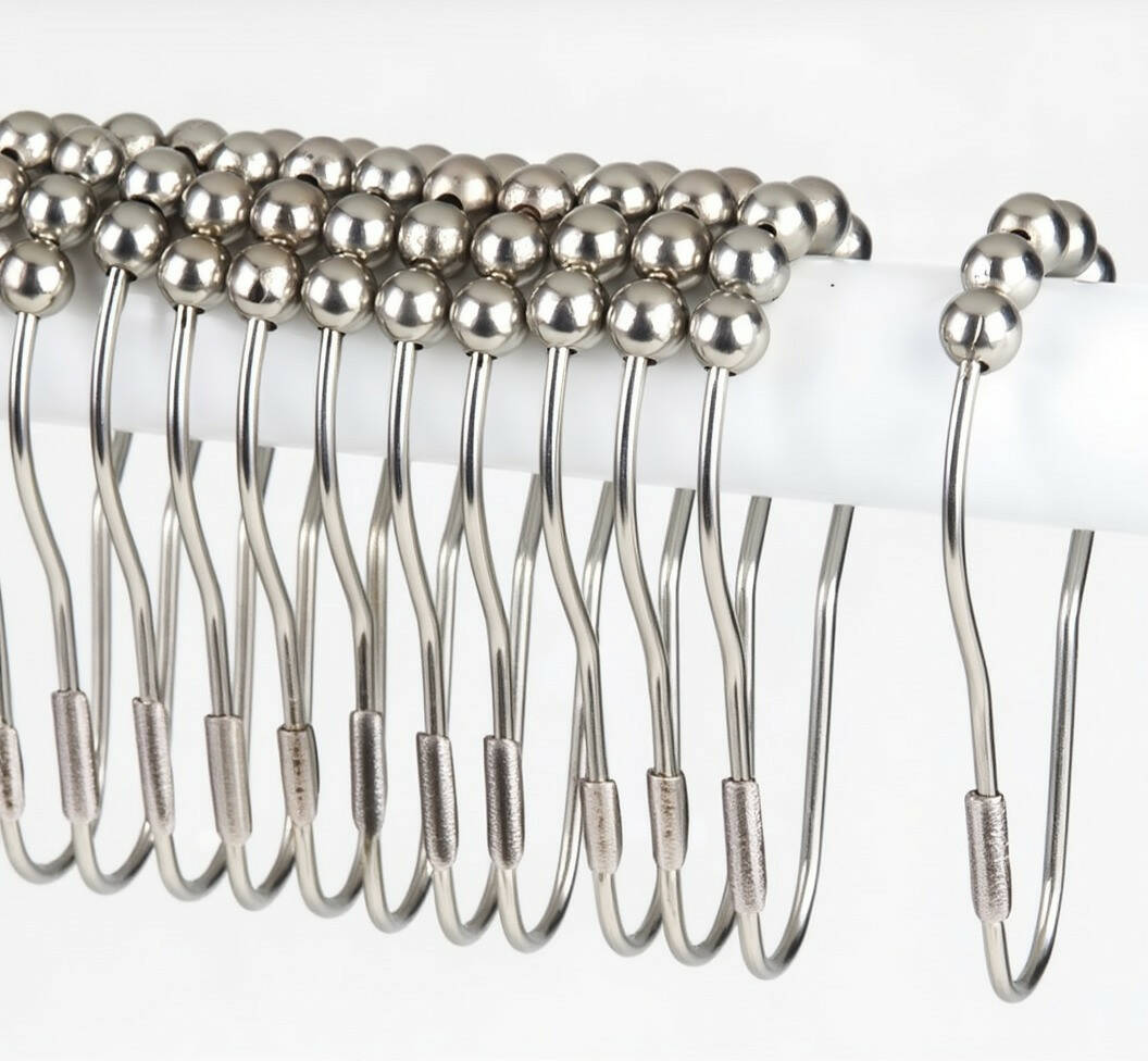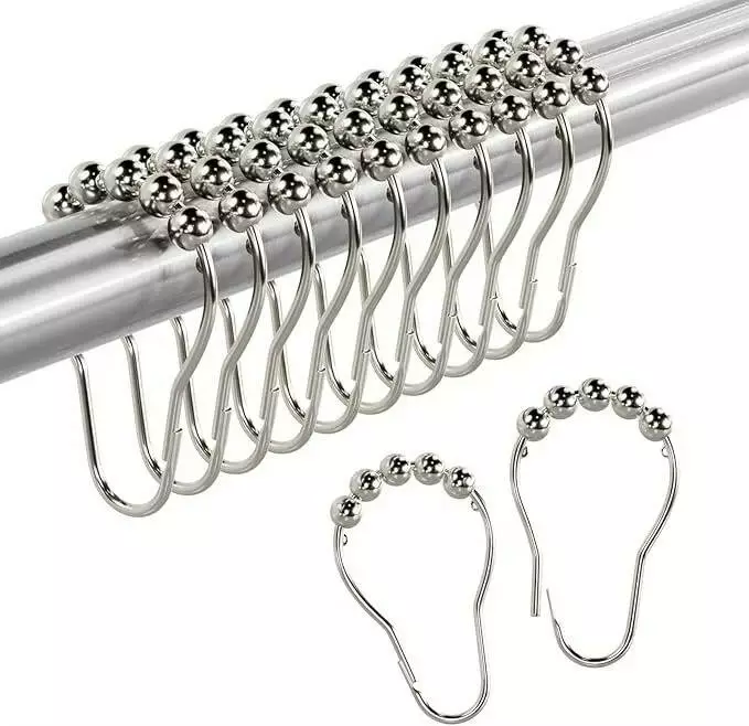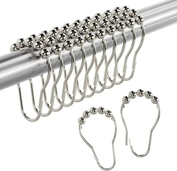 Набір із 12 роликових кілець-гаків для штори у ванну та душову