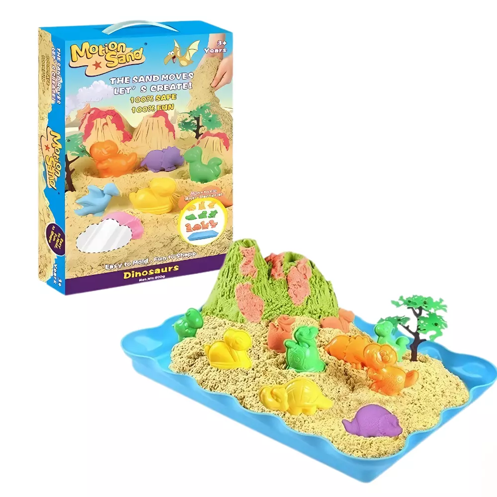 Кінетичний пісок дитячий, набір «Динозаври», маса для ліплення, для дитячої творчості з формочками