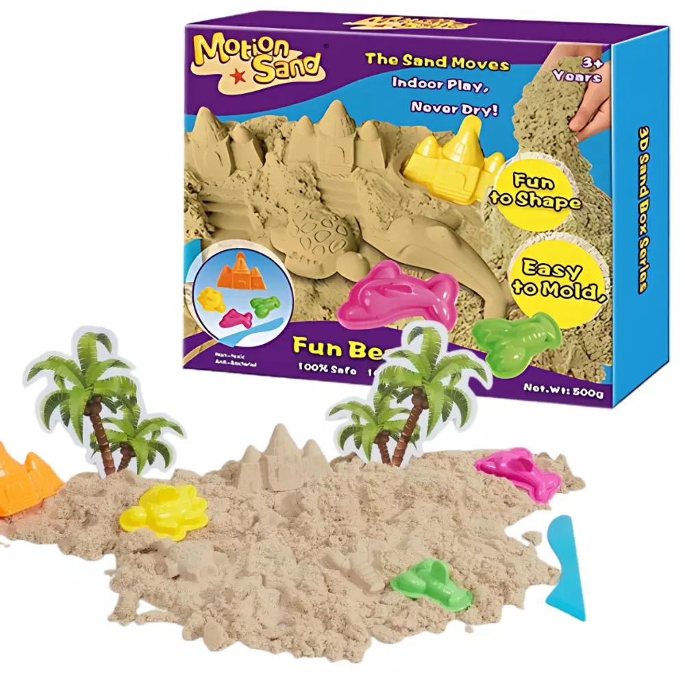 Кінетичний пісок для дітей, набір «Fun Beach», маса для ліплення, для дитячої творчості з формочками