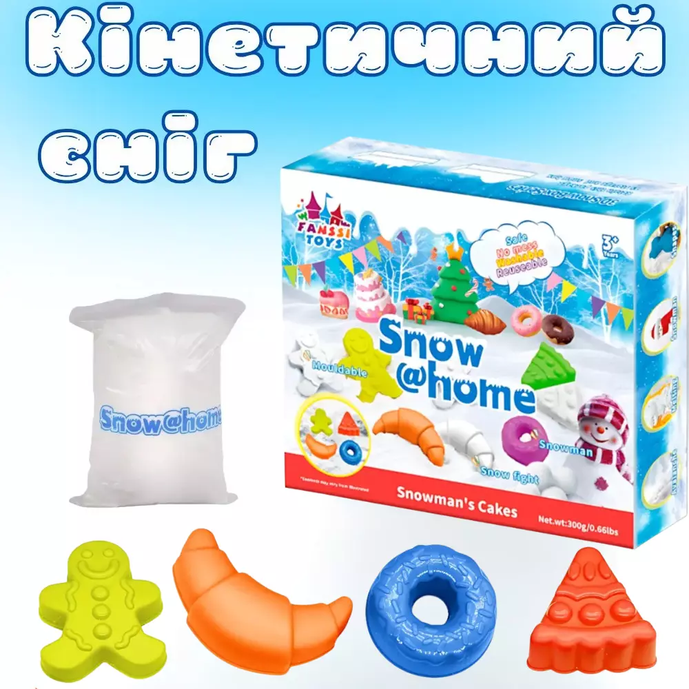 "снігові" десерти та фігурки! У набір входить 300 г штучного снігу,