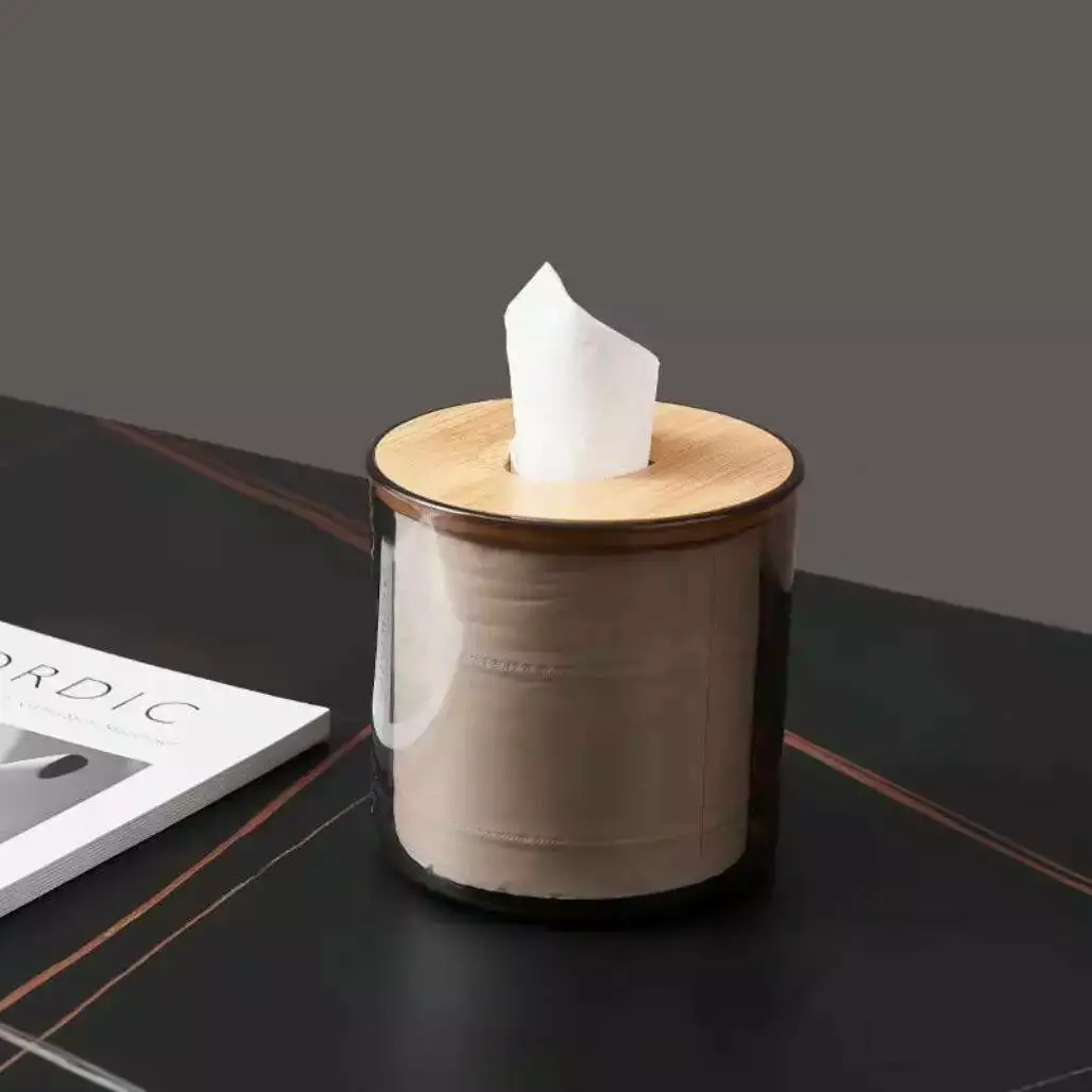 Комплект органайзерів для серветок 4 шт, контейнери серветниці, пластикові з дерев'яною кришкою