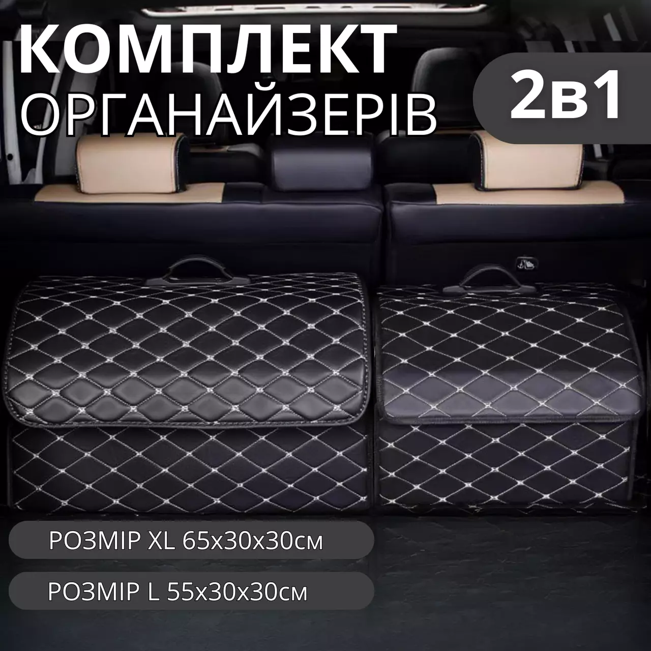 Комплект із 2 органайзерів: 55 × 30 × 30 см (L) і 65 × 30 × 30 см (XL)