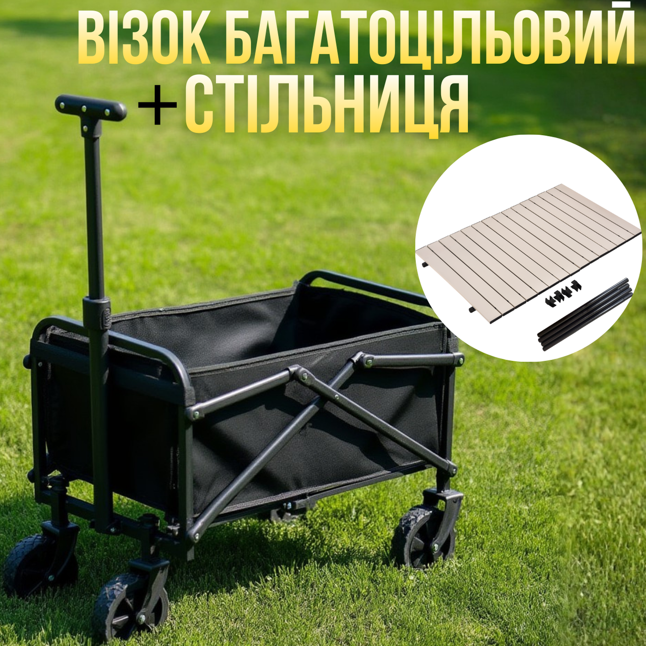 Комплект візок кемпінговий з стільницею 87х54 см складні для перевезення, універсальна для походів за продуктами, на 48 л