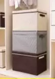 Виготовлені з високоякісної тканини, ці ящики забезпечують довговічність і стійкість до щоденного використання. Тканина приємна на дотик і легка у догляді, а міцні боковини і кришки зберігають форму і захищають вміст від пошкоджень. Це відмінний вибір для зберігання чутливих речей, таких як в'язані вироби або сезонний одяг.