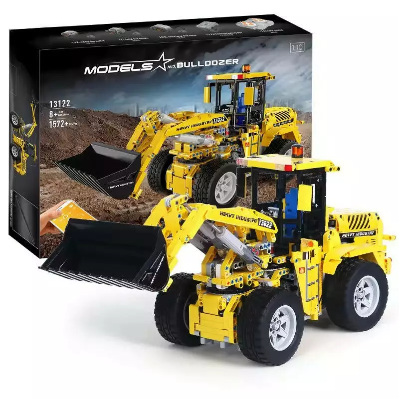 Конструктор Бульдозер на дистанційному керуванні складається з 1572 деталей і створює точну модель у масштабі 1:10. З розмірами 45 х 19 х 22.5 см, цей бульдозер вражає своїм зовнішнім виглядом і функціональністю, ідеально підходить для сюжетних ігор і моделювання будівельної техніки. Керування доступне через пульт 2.4G або смартфон, що робить гру ще більш інтерактивною.