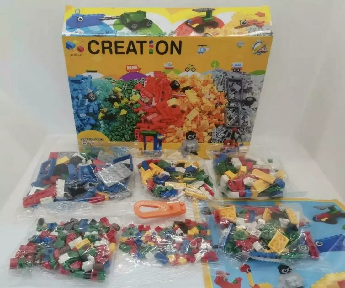 У наборі 550 різнокольорових кубиків, з яких малюк може зробити різноманітні конструкції.