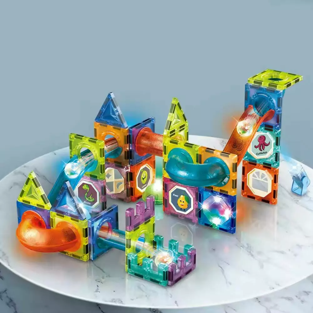 У набір входять три кульки, які світяться під час руху, створюючи вражаюче видовище, особливо в темряві. Дитина зможе з цікавістю спостерігати за тим, як кульки, що світяться, проносяться лабіринтом, додаючи в гру елемент чарівництва та інтерактиву. Цей конструктор стане чудовим способом провести час із користю, розвиваючи логіку та моторику.