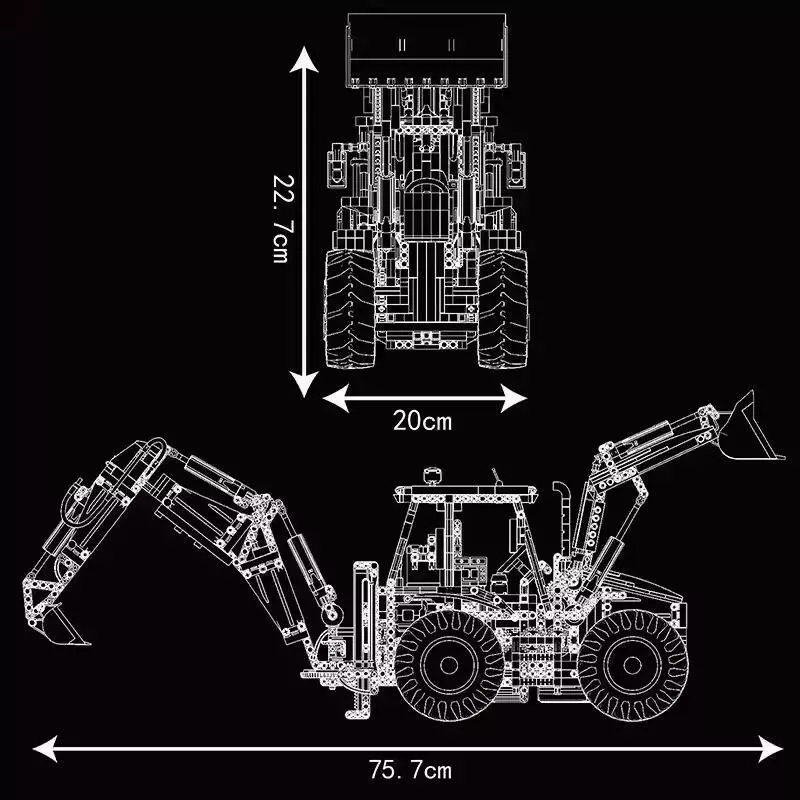 Конструктор Трактор із ковшами на дистанційному управлінні складається з 2239 деталей, даючи змогу зібрати деталізовану і функціональну модель зі значними розмірами - 75.7 х 20 х 22.7 см. Трактор оснащений двома ковшами, що додає реалістичності та функціональності для різних ігрових сценаріїв. Пульт управління 2.4G і підтримка управління через смартфон роблять цей набір інтерактивним і максимально цікавим.