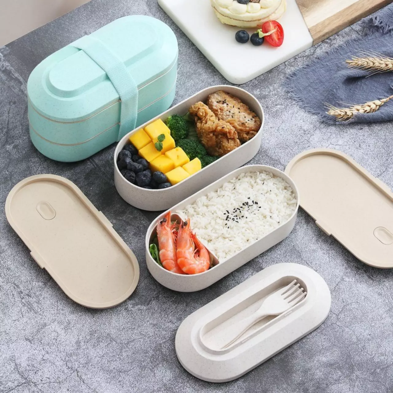 Верхня кришка оснащена окремим відсіком для зберігання столових приборів. У комплект входять виделка і ложка, що робить ланч-бокс зручним рішенням для використання поза домом.