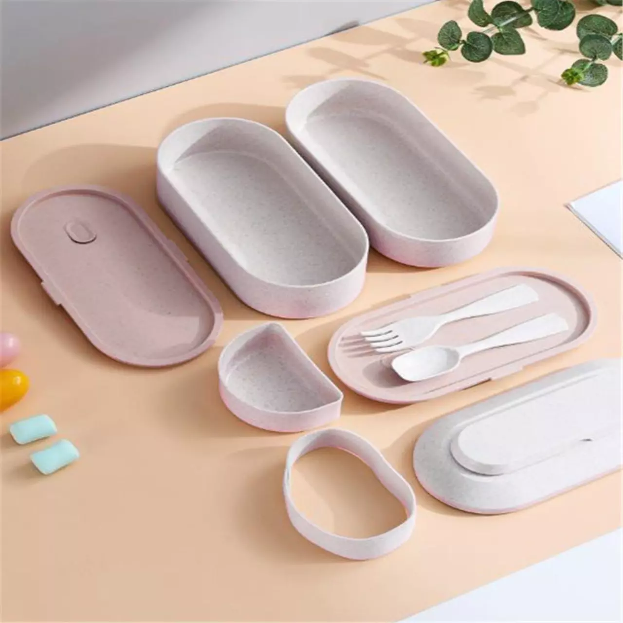 Верхня кришка оснащена окремим відсіком для зберігання столових приборів. У комплект входять виделка і ложка, що робить ланч-бокс зручним рішенням для використання поза домом.
