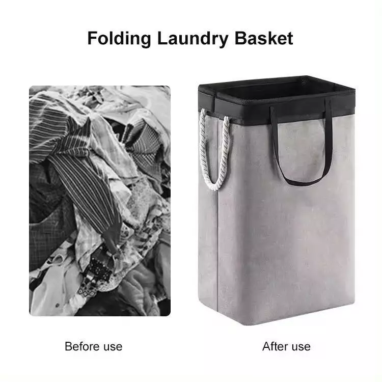 Наш складний кошик для білизни пропонує ідеальне рішення для зберігання та сортування вашої білизни. Сірого кольору, він додає стиль і порядок у вашу ванну кімнату або спальню.