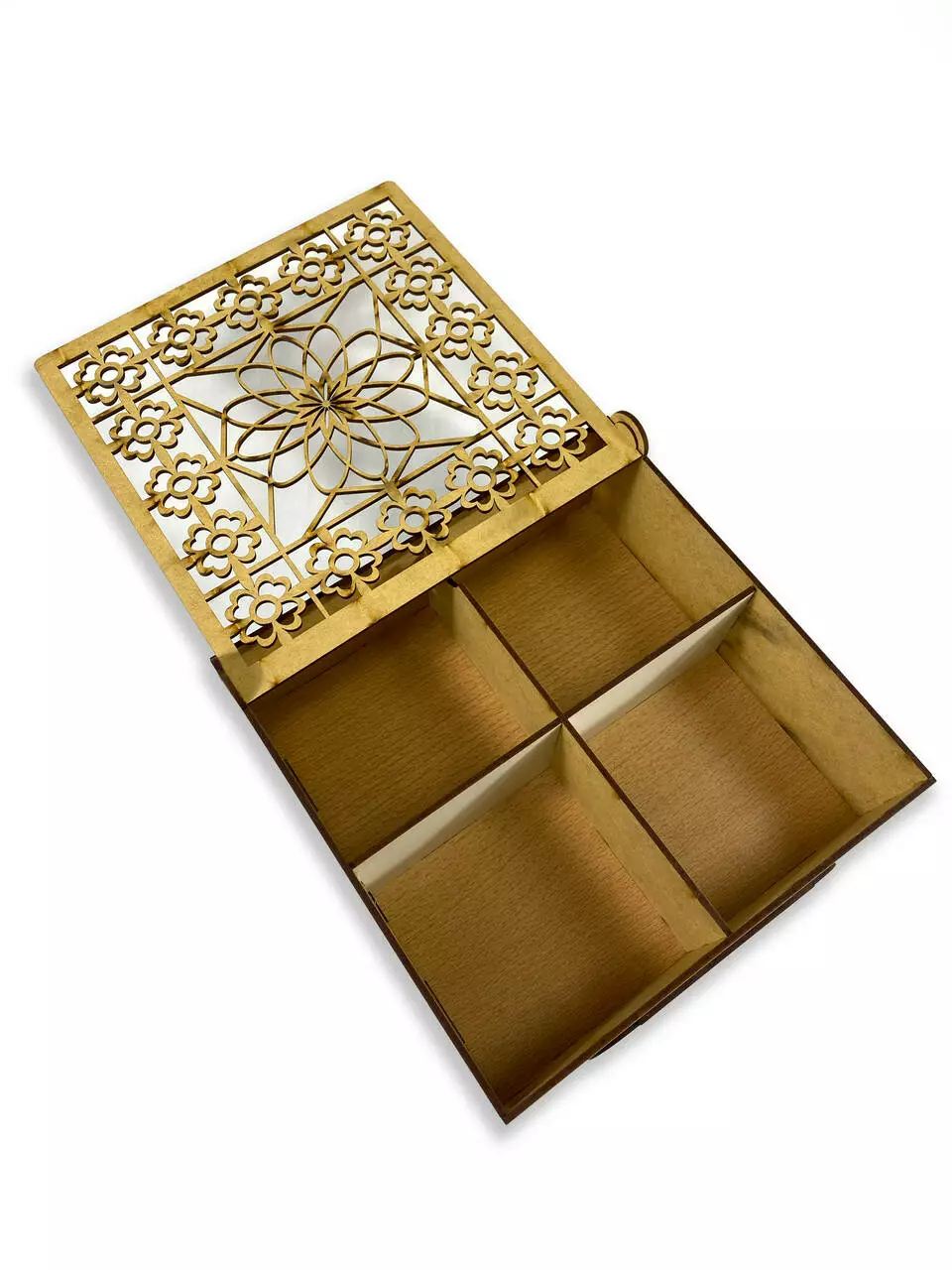 Виготовлена з високоякісного натурального дерева, наша коробка-органайзер має міцну конструкцію та вишуканий дизайн. Вона оснащена різьбленням та перфорацією, які додають естетичну чарівність та роблять використання зручним. Цей органайзер не тільки допоможе вам підтримувати порядок зберігання чаю, але і стане елегантним елементом декору вашої кухні або чайної зони. Його стильний дизайн та натуральні матеріали додадуть вашому інтер'єру затишок та вишуканість.