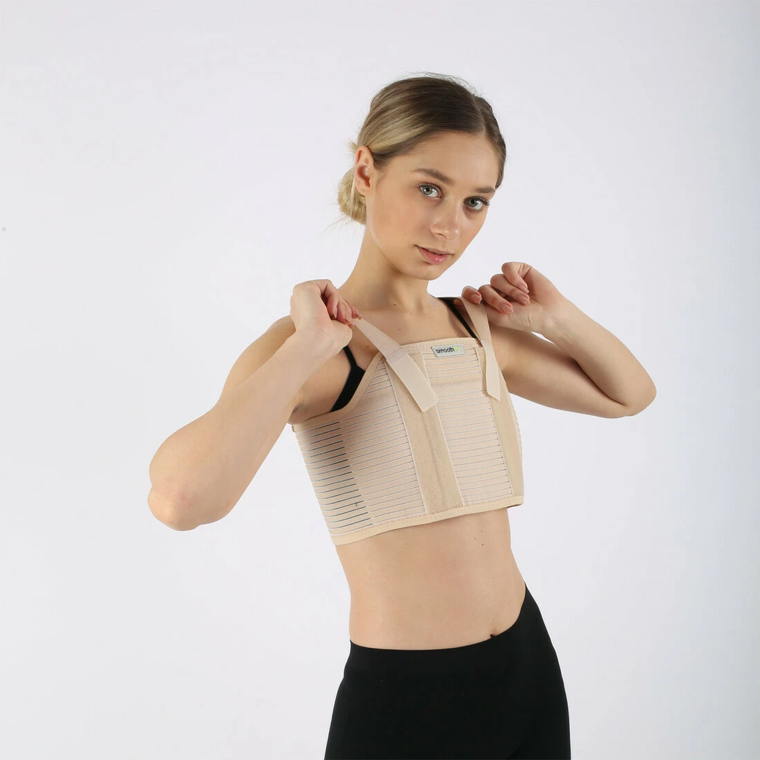 Корсет виготовлений з бавовняної ортопедичної тканини. Дозволяє шкірі вільно дихати. Стабілізує грудну клітину із зовнішнього боку. Це зменшує існуючий біль та полегшує виконання необхідних дихальних вправ.