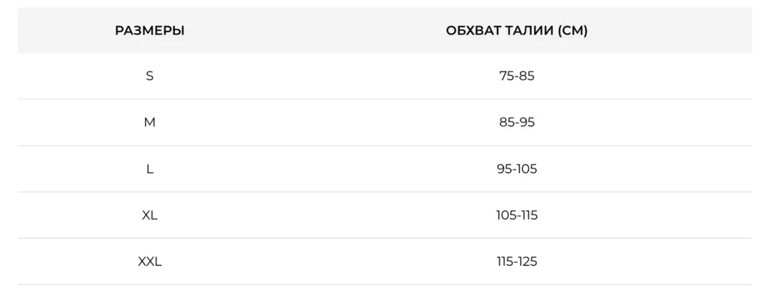 РОЗМІРИ ОБХВАТ ТАЛІЇ (CM)