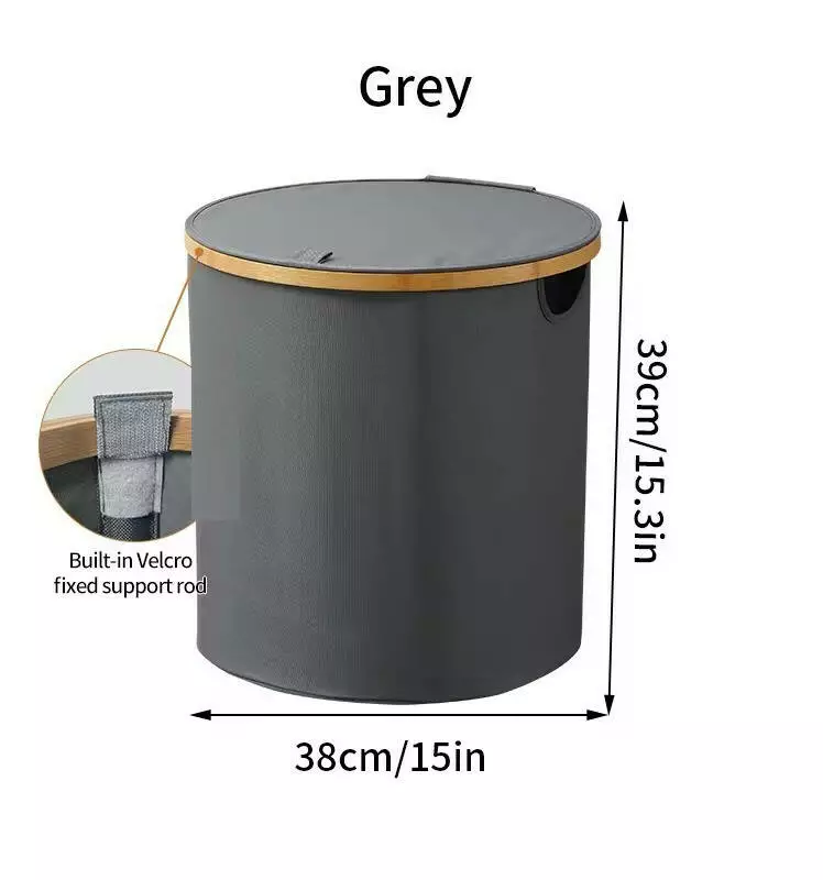 Кошик складний для білизни з кришкою і бамбуковими ручками в сірому кольорі являє собою ідеальне рішення для організації білизни у вашому домі. Його сучасний дизайн і сірий відтінок гармонійно впишуться в будь-який інтер'єр ванної або пральні. Бамбукові ручки додають природної елегантності та зручності під час транспортування.