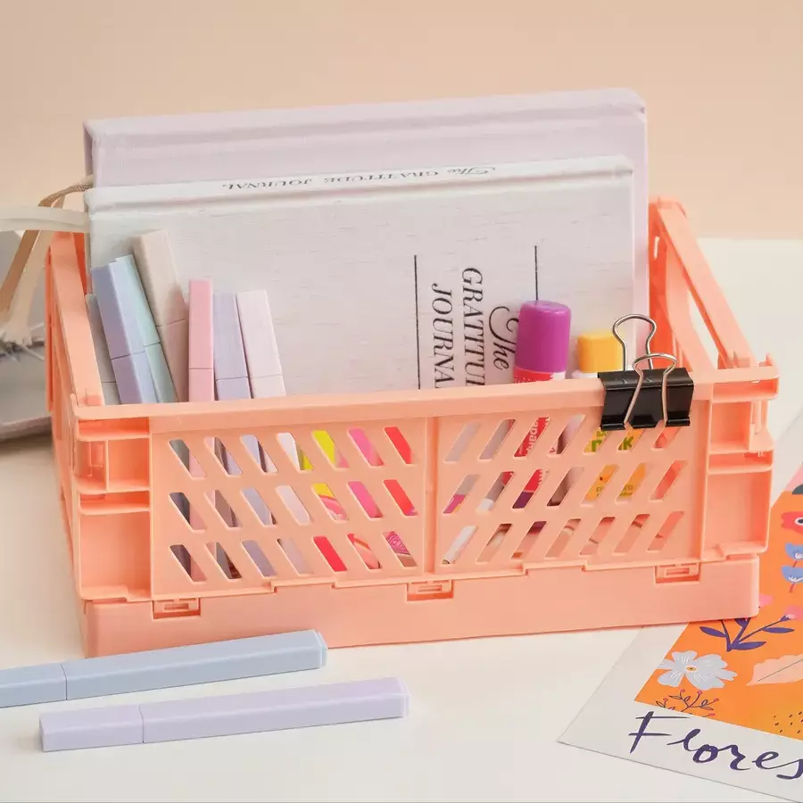 Кошик із пластику з ручками, контейнер для зберігання дрібниць, 25.5×15×9.7см, помаранчевий